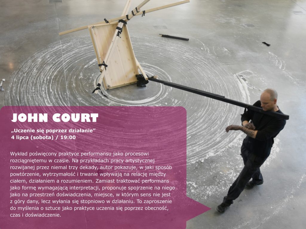 Wykład poświęcony praktyce performansu jako procesowi rozciągniętemu w czasie. Na przykładach pracy artystycznej rozwijanej przez niemal trzy dekady, autor pokazuje, w jaki sposób powtórzenie, wytrzymałość i trwanie wpływają na relację między ciałem, działaniem a rozumieniem. Zamiast traktować performans jako formę wymagającą interpretacji, proponuje spojrzenie na niego jako na przestrzeń doświadczenia — miejsce, w którym sens nie jest z góry